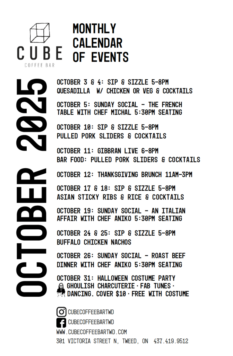 Cube Coffee Bar in Tweed now offers catering for all occasions, with gourmet sandwiches, salads, pastries, and local beers and wines. Crafted with quality ingredients and delivered with care. For more information please email us at info@cubecoffeebartwd.com or stop by the store to and say hello!